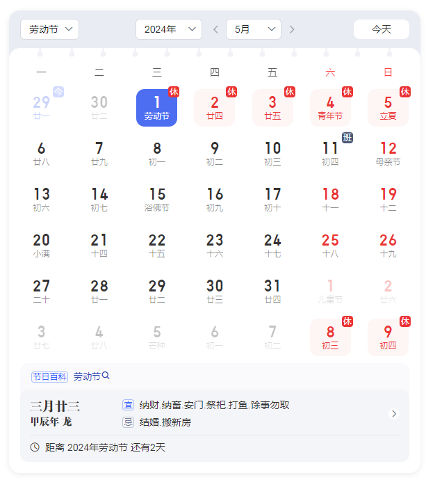 关于2024年中丰建科(北京)集团五一放假的通知发表时间:2024-04-30 16:01 根据2024年《国务院办公厅关于2024年部分节假日的通知》,结合我集团整体情况,现将2024年五一劳动节放假通知如下: 5月1日至5月5日放假调休,共5天。5月6日(星期一)正常上班。提前预祝各位同事五一劳动节快乐! ![]() 二、相关要求 1、放假期间各部门做好防火,防盗工作并做好办公区域的门,窗等。 2、放假期间各部门所有人员的手机应确保24小时处开机状态,保证通信联络的畅通。 3、回家或外出旅游的员工应注意安全,并遵守有关法律法规,提前做好返程安排,确保如期上班。 |